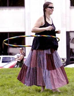 denim) were worn with tie-dyed t-shirts. Blouses tied up at the